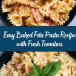 This Baked Feta Pasta recipe is a creamy, savory dish combining juicy roasted grape tomatoes and a golden block of baked feta cheese, tossed with bow tie pasta and fresh basil. Easy to prepare and packed with Mediterranean flavors, it’s perfect for a comforting weeknight dinner or a stylish meal to impress guests.