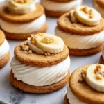 Whip heavy cream until stiff peaks form, then gradually beat in powdered sugar to create a silky sweet filling. Stir in the vanilla extract and banana extract to emphasize the luscious banana pudding flavor. This light and airy filling is what turns simple cookies into dreamy sandwich treats.