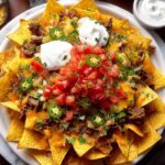 Garnishing your Bison Brisket Nachos Recipe is where you bring brightness and balance. Fresh diced avocado and sour cream soften the smoky, spicy notes of the meat and jalapeño, while chopped cilantro adds herbal lift. A squeeze of lime juice right before eating amps up the flavor with a fresh pop and keeps the dish vibrant.