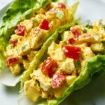 - Top with tomato: Sprinkle a few pieces of diced tomato over the egg salad filling on each lettuce leaf to add freshness and juiciness.