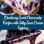 When it’s time to serve this delightful Blueberry Swirl Cheesecake with Silky Topping Recipe, consider garnishing with a few fresh blueberries and a sprig of fresh mint. The fresh berries play off the rich blueberry swirl, adding texture and a burst of freshness to each bite while mint adds a subtle aromatic contrast. A light dusting of powdered sugar is a simple, elegant touch that also adds visual appeal.
