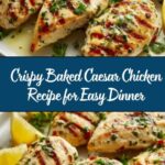 This Caesar Chicken recipe features tender, juicy boneless chicken breasts marinated in creamy Caesar dressing, then coated with a flavorful mixture of Parmesan cheese and panko breadcrumbs. Baked to golden perfection, it’s a deliciously easy dinner option that combines classic Caesar flavors with a crispy, cheesy crust.