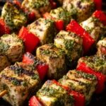 These Chicken Pesto Kabobs are a flavorful and easy-to-make grilled dish featuring juicy marinated chicken thighs and sweet cherry tomatoes. Coated in homemade or store-bought pesto, the chicken absorbs rich herbaceous flavors while grilling to perfection, making it an ideal recipe for a quick weeknight dinner or outdoor barbecue.