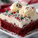 This Christmas Red Velvet Poke Cake is a festive and indulgent dessert perfect for holiday celebrations. Featuring a moist red velvet cake infused with a luscious blend of sweetened condensed milk and melted white chocolate, topped with a fluffy cream cheese frosting and decorated with festive sprinkles, this poke cake is both visually appealing and irresistibly delicious.