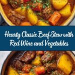 This Classic Beef Stew is a hearty, flavorful dish perfect for comforting meals. Tender chunks of beef are coated in a seasoned flour mixture, seared to develop a rich crust, then slowly braised with aromatic vegetables, red wine, and savory herbs. The stew simmers for hours until the meat becomes fork-tender and the potatoes and carrots are perfectly cooked, resulting in a warm, satisfying dish ideal for family dinners or special occasions.