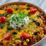 If you’re craving a dish that feels like a warm, comforting hug, you’ve got to try this Cornbread Taco Bake Recipe. It brings together the hearty flavors of seasoned ground meat, black beans, and sweet corn, all topped with a golden, fluffy cornbread crust that bakes up just right every time. This recipe is a deliciously simple way to combine Mexican-inspired spices with classic American comfort food, creating a meal that’s colorful, flavorful, and downright satisfying from the first bite to the last. Trust me, once you make this Cornbread Taco Bake Recipe, it’ll become a go-to for weeknights, potlucks, or any time you want to impress with minimal fuss.