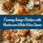 A rich and creamy chicken dish featuring tender boneless skinless chicken breasts cooked in a savory Asiago cheese and white wine sauce with mushrooms and garlic, perfect for a hearty and elegant meal finished in under 40 minutes.
