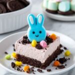 Just before serving, sprinkle the top with colorful Easter M&M’s and place a PEEP marshmallow on each slice. If you want to get extra festive, add a touch of edible green grass to complete the garden look. Now your Easter Dirt Cake (No-Bake) Recipe is ready to dazzle!