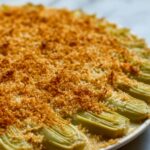 Bake the gratin in the preheated oven for 20 to 25 minutes until the topping is bubbling and beautifully golden. The creamy fennel should be tender and infused with the savory flavors of the cheese and garlic while the breadcrumbs add a lovely crisp texture contrast.