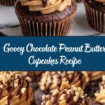 These Gooey Chocolate Peanut Butter Cupcakes combine rich chocolate cake with a creamy peanut butter filling and fluffy peanut butter frosting. Perfectly moist and indulgent, these cupcakes bring together the classic flavors of chocolate and peanut butter for a delightful treat that’s great for any occasion.