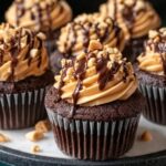 Elevate your cupcakes by garnishing with chopped roasted peanuts for an added crunch, a drizzle of melted chocolate, or a sprinkle of flaky sea salt to highlight the peanut butter’s richness. These little touches turn your cupcakes into showstoppers and tantalize the senses even further.