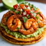 These Grilled Shrimp Tostadas with Guacamole & Pico de Gallo are a vibrant and flavorful Mexican-inspired dish that combines perfectly seasoned grilled shrimp with creamy guacamole and fresh pico de gallo atop crispy tostada shells, making for a quick and delightful meal perfect for gatherings or a tasty weeknight dinner.