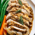 This Herb Roasted Turkey Tenderloin recipe offers a savory and aromatic meal featuring tender slices of turkey roast infused with mustard, rosemary, and garlic. Roasted alongside fresh vegetables and finished with a flavorful pan sauce made from white wine and chicken broth, this dish is perfect for a wholesome and elegant dinner.