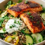This Honey Harissa Salmon Quinoa Bowl is a flavorful, healthy dish combining perfectly roasted salmon glazed with a sweet and spicy honey harissa sauce, served atop fluffy quinoa and fresh, vibrant vegetables. It’s a balanced meal packed with protein, fiber, and a delightful blend of Mediterranean and North African-inspired flavors.