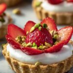 These Mini Strawberry-Pistachio Mascarpone Tarts are delightful bite-sized desserts featuring a buttery, crisp crust filled with a smooth and fluffy mascarpone cream. Topped with fresh strawberries and crunchy pistachios, they offer a perfect balance of textures and flavors, ideal for special occasions or elegant gatherings.