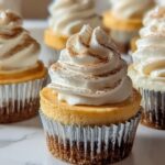 In a medium bowl, beat softened cream cheese until it’s perfectly smooth and fluffy—this is the foundation for your filling’s creamy texture. Next, add pumpkin puree, powdered sugar, brown sugar, pumpkin pie spice, and vanilla extract. Mix until everything is combined and luxuriously creamy. Finally, gently fold in the whipped topping to lighten the mixture, creating the dreamy, airy filling that makes these cheesecakes so irresistible.