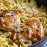 A simple and comforting one-pan chicken dish served with creamy buttered egg noodles cooked together in a savory garlic and Parmesan sauce. This recipe delivers tender, golden chicken breasts alongside rich and flavorful noodles, perfect for a quick and satisfying weeknight meal.