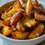 This Oven Fried Potatoes & Onions recipe offers a crispy, flavorful side dish featuring thinly sliced russet potatoes and onions seasoned with garlic, paprika, and herbs, then baked to golden perfection. It’s a healthier alternative to traditional frying, delivering delicious comfort food with a simple, straightforward method.
