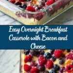 A hearty and convenient overnight breakfast casserole combining eggs, milk, bread, cooked bacon or sausage, and sharp cheddar cheese. Perfect for busy mornings, this dish is prepared the night before and baked fresh in the morning to golden, cheesy perfection.