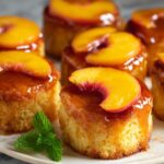 8. Cool and Invert: Let the cakes cool for 5 minutes in the pan. Run a knife gently around the edges of each mini cake to loosen, then carefully invert the pan onto a wire rack or platter to release the cakes with the caramelized peaches now on top, showcasing their beautiful glossy finish. Serve warm or at room temperature.