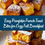 These Pumpkin French Toast Bites are a delightful twist on traditional French toast, featuring tender bread cubes soaked in a creamy pumpkin-spiced custard and pan-fried to golden perfection. Perfect as a cozy fall breakfast or a sweet snack, they’re served warm with maple syrup and a sprinkle of powdered sugar for an irresistible treat.