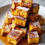 These Pumpkin French Toast Bites are a delightful twist on traditional French toast, featuring tender bread cubes soaked in a creamy pumpkin-spiced custard and pan-fried to golden perfection. Perfect as a cozy fall breakfast or a sweet snack, they’re served warm with maple syrup and a sprinkle of powdered sugar for an irresistible treat.