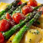 This delicious and vibrant ravioli dish combines tender cheese-filled pasta with fresh asparagus, cherry tomatoes, and a fragrant blend of garlic and herbs. Sauteed in olive oil and finished with a light lemon and chicken broth sauce, it’s a quick and satisfying meal perfect for any night of the week.