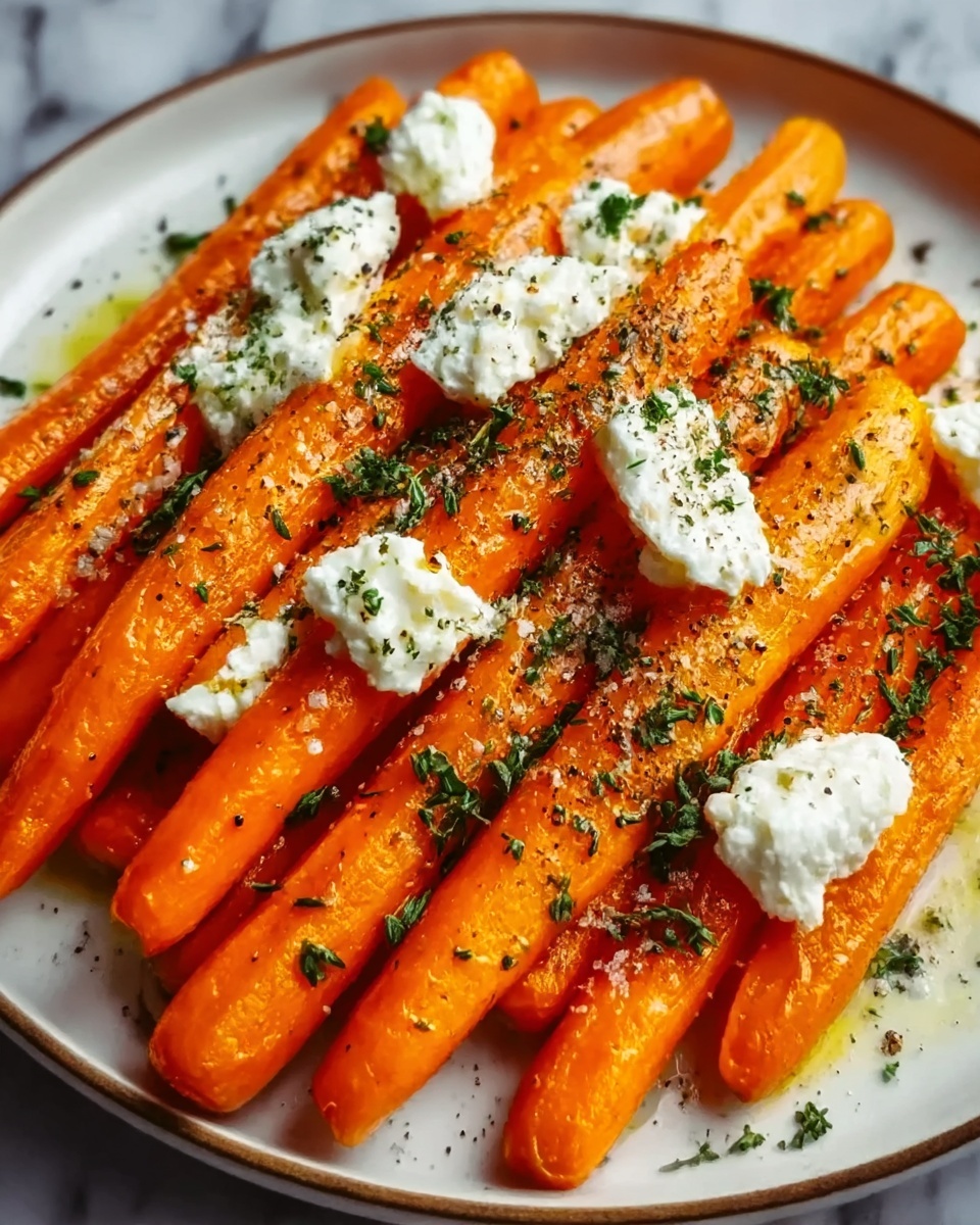 This Roasted Carrots with Whipped Ricotta recipe features tender, caramelized carrots seasoned with warm spices and served atop a creamy, zesty whipped ricotta. A delightful combination of earthy roasted veggies and light, fluffy cheese perfect for a flavorful side dish or light appetizer.