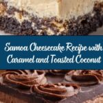 This Samoa Cheesecake combines a buttery graham cracker crust with a rich, creamy cheesecake infused with toasted coconut and caramel sauce, topped with melted chocolate and more toasted coconut for a delightful Samoa cookie-inspired dessert. Perfect for special occasions or a decadent treat, this cheesecake offers a luscious blend of textures and flavors reminiscent of the classic Samoa cookie.