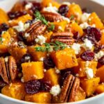 Sweet and Savory Honey Roasted Butternut Squash with Cranberries, Pecans, and Feta Recipe