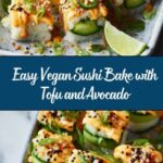 A delicious and easy-to-make Vegan Sushi Bake featuring seasoned sushi rice layered with a creamy tofu mixture, baked to perfection and topped with fresh avocado, cucumber, nori, and green onions. This Japanese-inspired fusion casserole is perfect for a plant-based, gluten-free meal that satisfies sushi cravings without the hassle of rolling.