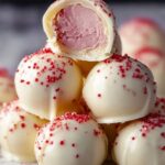 Indulge in these luscious White Chocolate Strawberry Truffles featuring a creamy strawberry-infused ganache center coated in smooth white chocolate. These elegant and bite-sized treats combine fresh strawberries with rich white chocolate, making them perfect for special occasions or anytime you crave a sophisticated sweet treat.