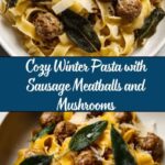 This Winter Pasta with Mushrooms, Sausage Meatballs, Walnuts & Crispy Sage is a warm and flavorful dish perfect for cozy evenings. It features tender homemade sausage meatballs, caramelized mushrooms with garlic and thyme, short-cut pasta, toasted walnuts, and crispy sage leaves, all brought together in a creamy sauce and topped with shaved parmesan or romano cheese.